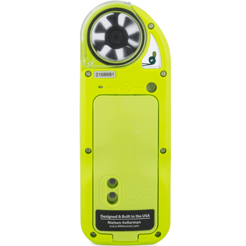 1 inch|25 mm diameter impeller with precision axle and low-friction Zytel® bearings. Startup speed stated as lower limit, readings may be taken down to 0.4 m/s | 79 ft/min| 1.5 km/h | .9 mph | .8 kt after impeller startup. Off-axis accuracy -1% @ 5° off-axis; -2% @ 10°; -3% @ 15°. Calibration drift < 1% after 100 hours use at 16 MPH | 7 m/s. Replacement impeller (NK PN-0801) field installs without tools (US Patent 5,783,753). Wind speed calibration and testing should be done with triangle on impeller located at the top front face of the Kestrel. Measuring wind speeds above 60 m/s / 134.2 mph can damage the impeller. *F/S only in Ballistics units. Beaufort not available in Ballistics units. |