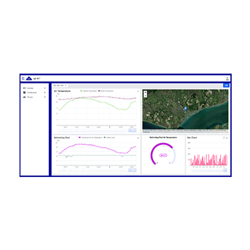 The rpr-IoT dashboard is user configurable to display data from multiple sensor nodes. Tiles can be added which display data in different formats, for example: line plots, bar graphs, dials or graphicly on a map or plan. Individual tiles can be defined and positioned by the user to suit their needs. Sensors can be given names applicable to their application.